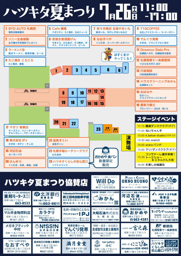 ハツキタ夏まつりは、ハツキタ夏まつり実行委員会(発寒北連合町内会、発寒北料飲店組合、発寒北商店街振興組合)が主催する地域密着型の夏祭りです。発寒地区の住民が一年で最も楽しみにしているイベントの一つとして定着しています。