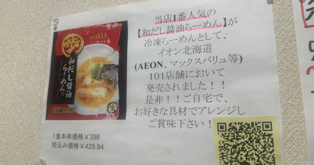 お店に行けない時でも楽しめるよう、イオンやマックスバリュなどで冷凍の和だし醤油らーめんが販売されています。家庭でもらーめん小屋歩の味を手軽に楽しむことができます。